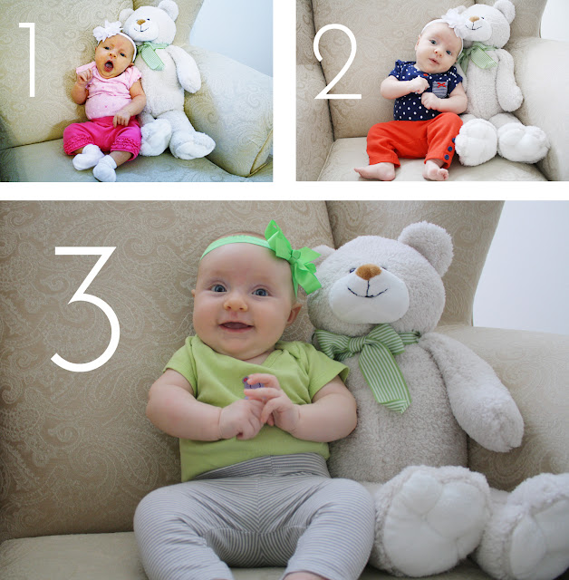 Today little Miss Kennedy is 3 months old! She is appropriately celebrating her 3 month birthday with a little green for St. Patty’s Day. I guess her bear got the memo, too.