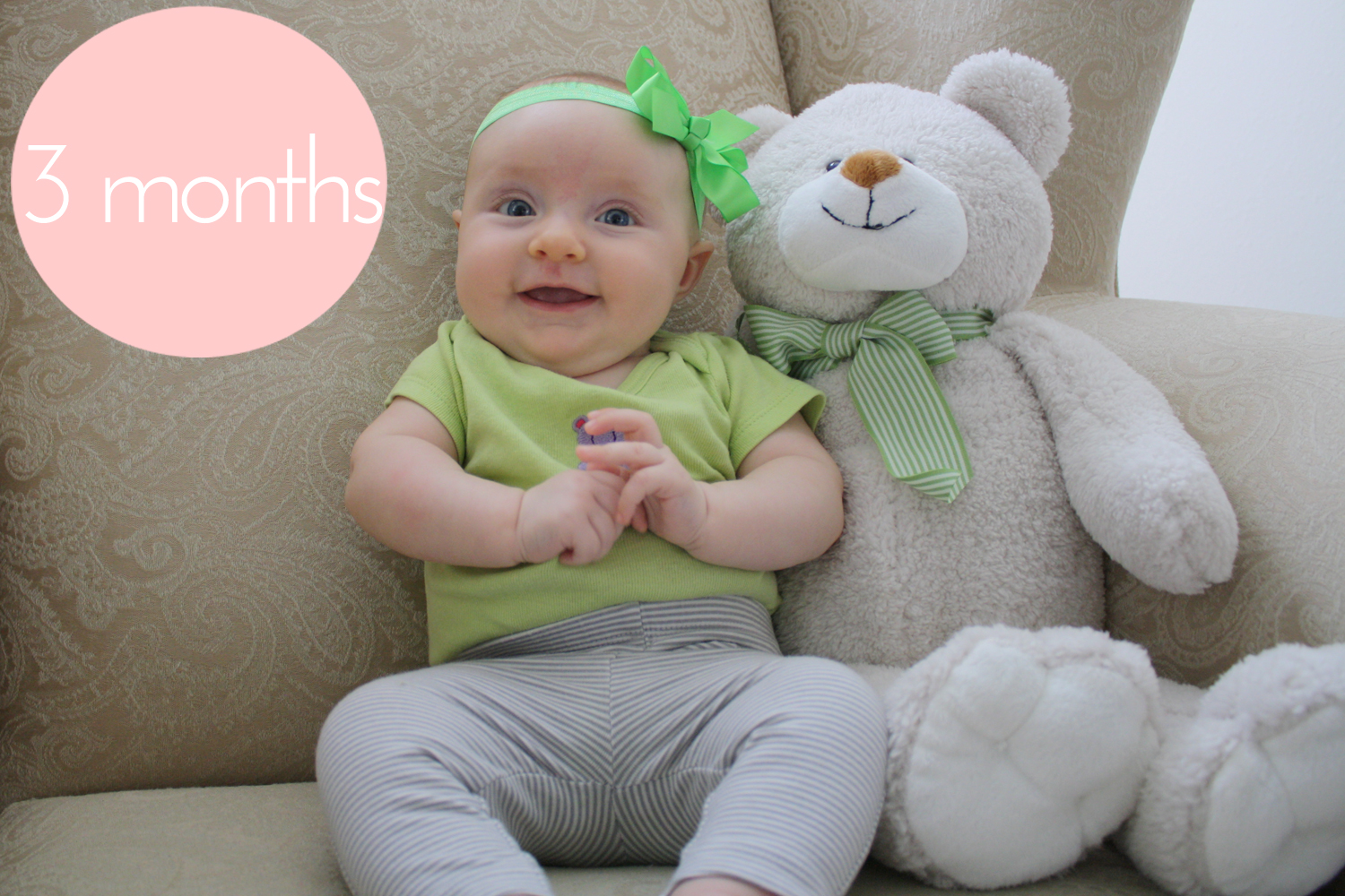 Today little Miss Kennedy is 3 months old! She is appropriately celebrating her 3 month birthday with a little green for St. Patty’s Day. I guess her bear got the memo, too.