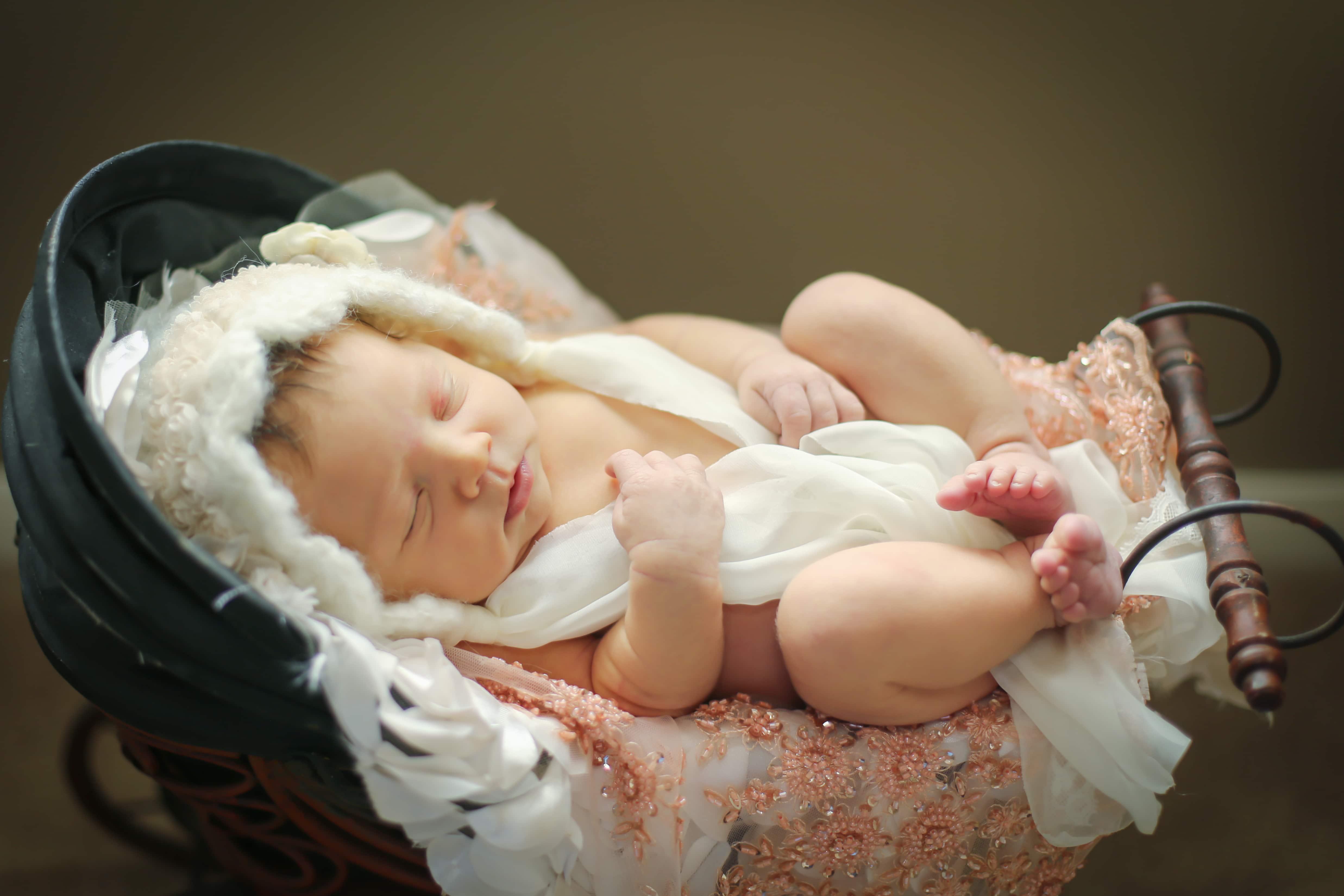 At a whopping five days old, Caroline was the star of her first photo shoot. I couldn’t be more happy or thrilled with the results. Lindsey of Londyn Lane Photography came over with her slew of props, hats, wings, backdrops and bows and certainly knocked this session out of the park. (Side note: Can I just say that it was worth every penny to have someone who has all of said props? So awesome not having to think about styling, especially just after having a baby!)
