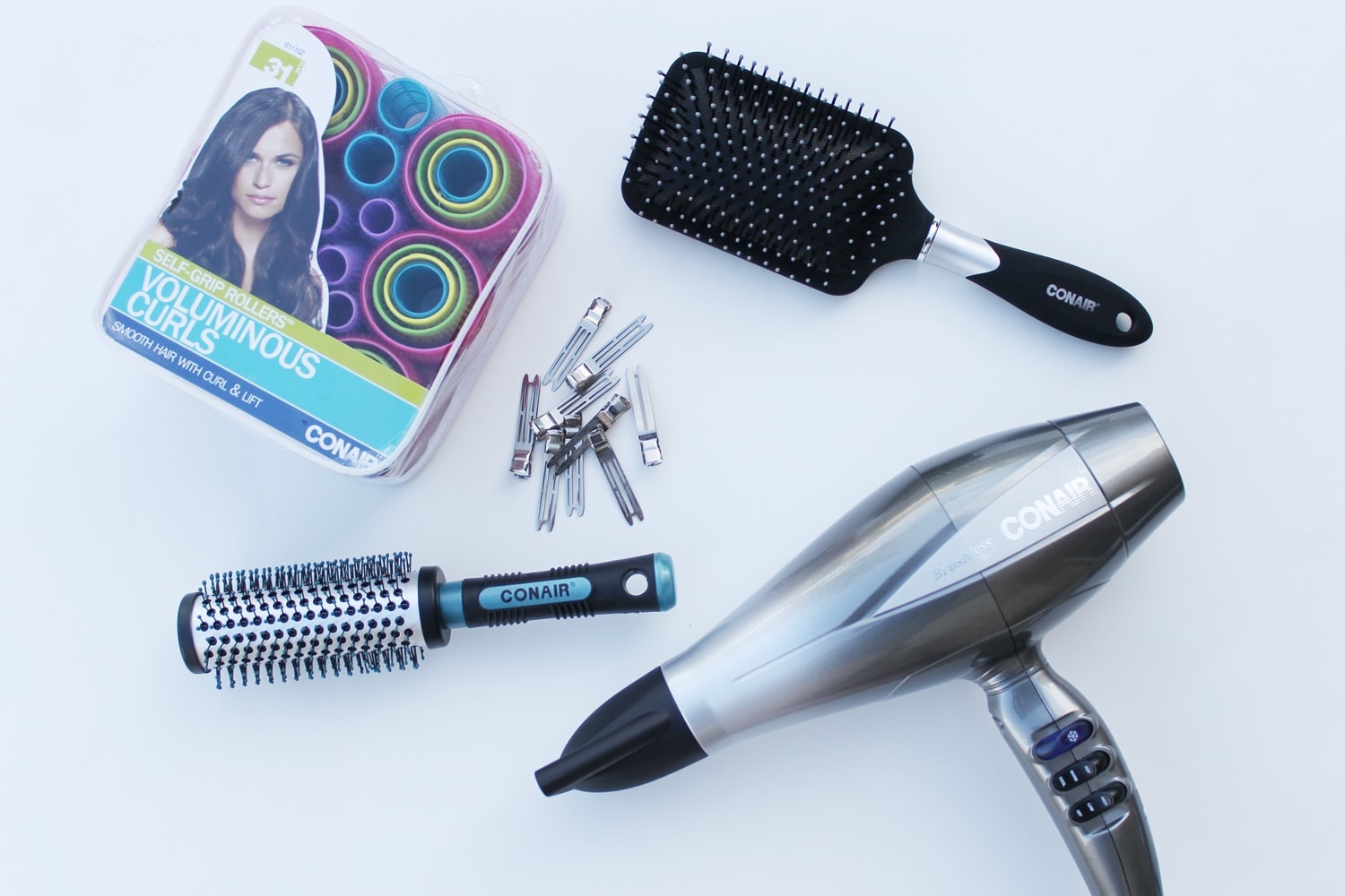 Give the rollers a bit of flexible hairspray, and wait ten minutes. Remove the velcro rollers carefully and then shake your hair out with your fingers. Take the paddle brush to the hair if you need to smooth it out, and finish up with some hairspray. You’re done!