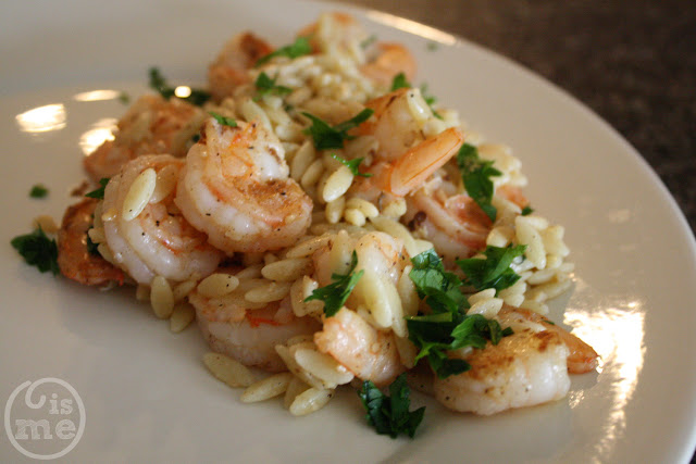 – I was in charge of cooking the orzo (only thing I did). After cooking the orzo, I seasoned it with some garlic powder, a splash of lemon juice and a little cracked black pepper. You can never have too much garlic.