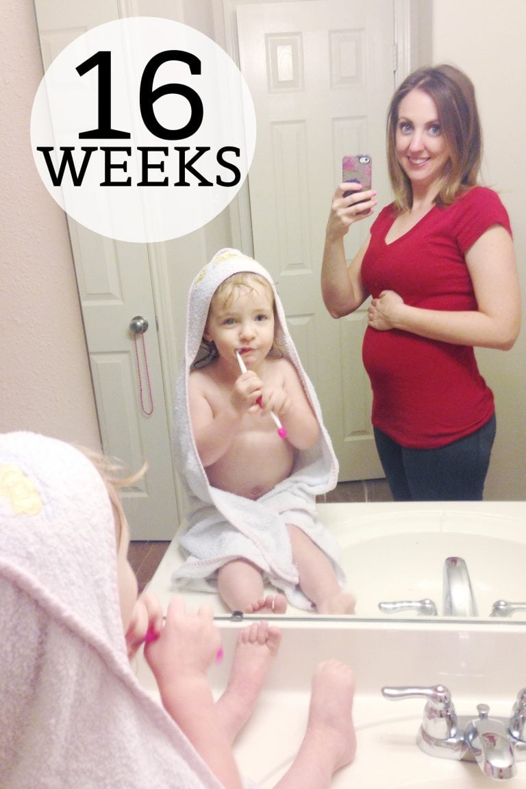 Wow, 16 weeks. This is flying by. So what do we think of this week’s bump selfie? I totally forgot about it until I was standing there helping Kennedy brush…