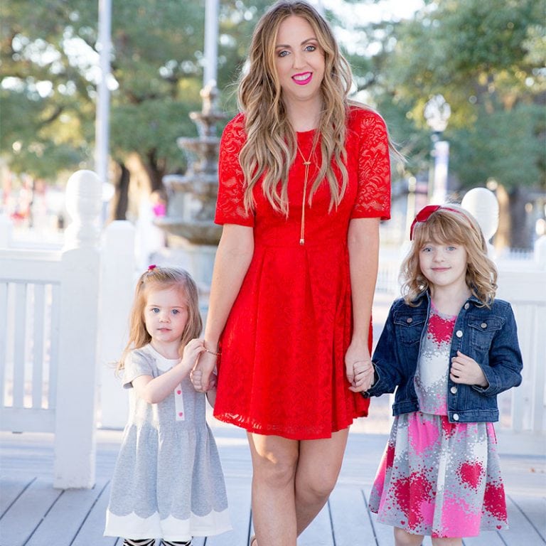 It’s been a couple of months since we’ve done a mommy and me post, but we’re back today with a Valentine’s Day bang! We are sporting our favorite pink…